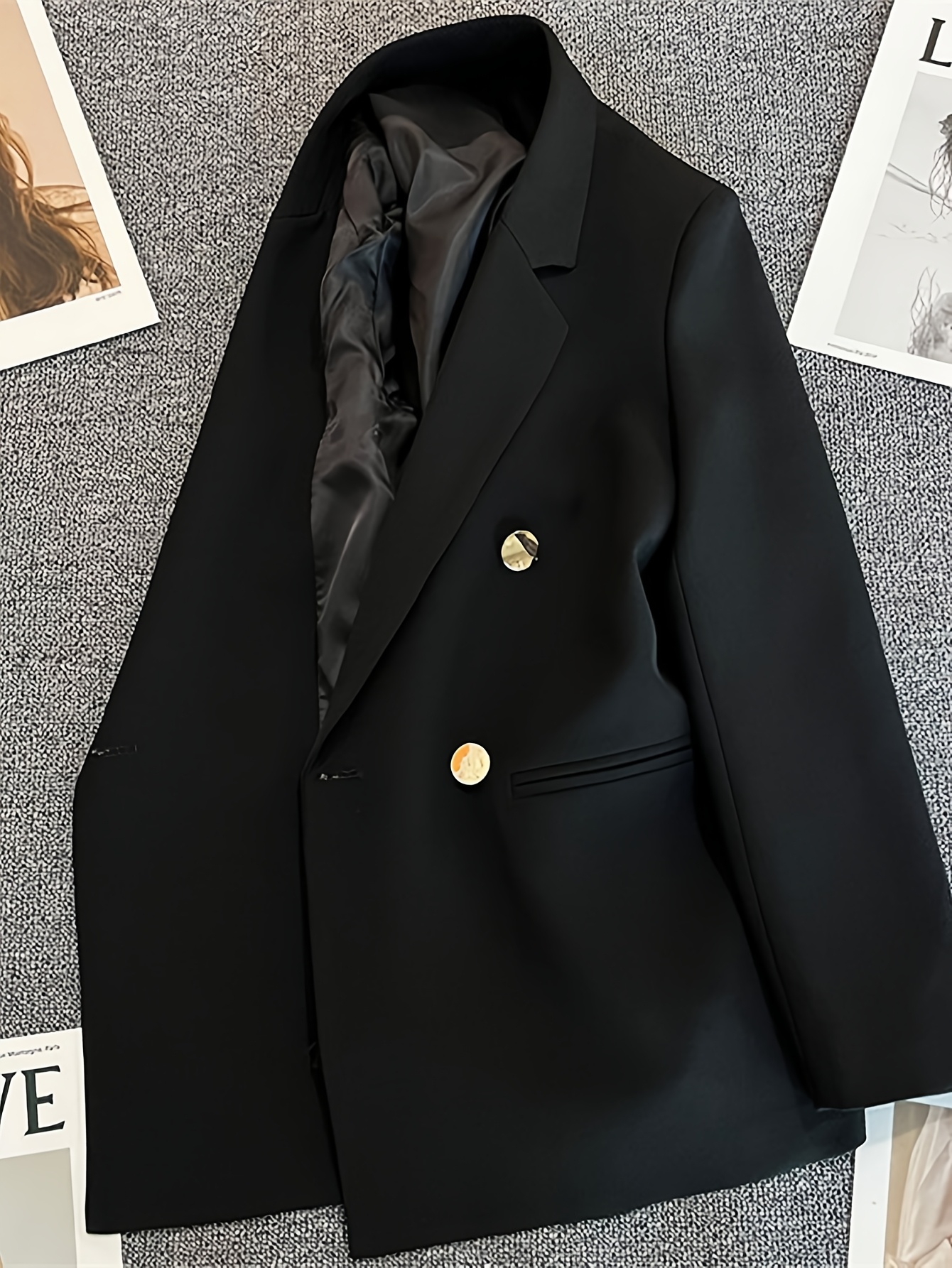 Women's Bright Orange Double-Breasted Lapel Blazer - Oversized Loose-Fit Winter Coat with Pockets, Long Sleeve Tailored Jacket for, Casual & Formal Events, Machine Washable (Vibrant Solid Color Outerwear)