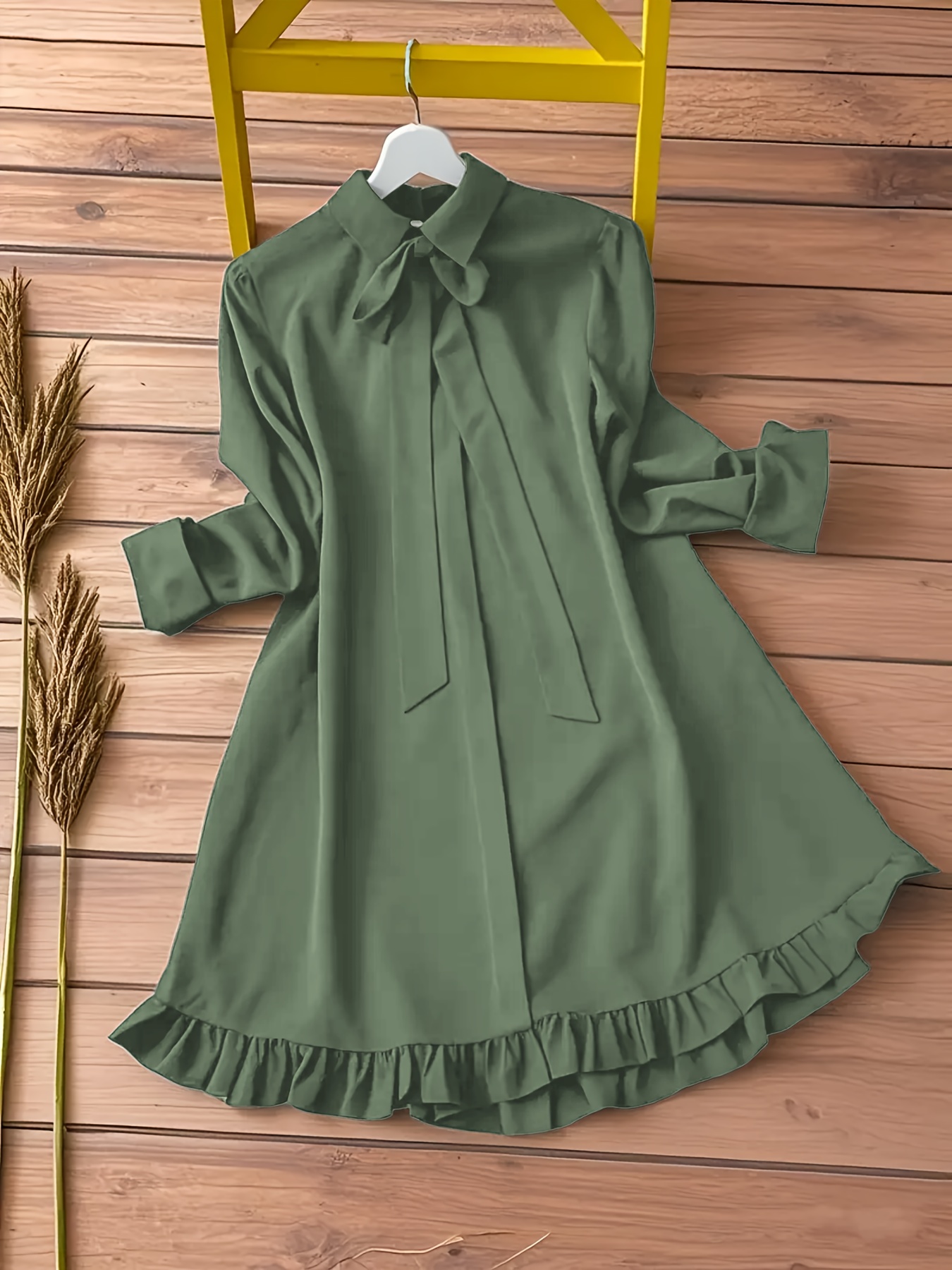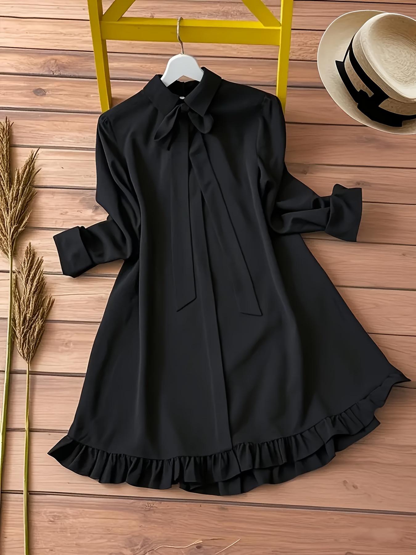 Women's Elegant Black -Line Dress with Collar & Ruffled Short Sleeves - Fitted Waist Short Length (bove Knee) Long Dress, Machine Washable -Season Formal/Casual Wear, Bow Tie Closure - Tailored for Weddings & Office ttire, Black Dresses For Women, Long Sleeve Dresses For Women, Dresses For Women Elegant Classy, Black Dresses For Women Elegant Classy, Fall Dresses For Women, High Neck Dress For Women, Blouse For Women, Party Dresses For Women, Dresses For Women Winter, Dresses