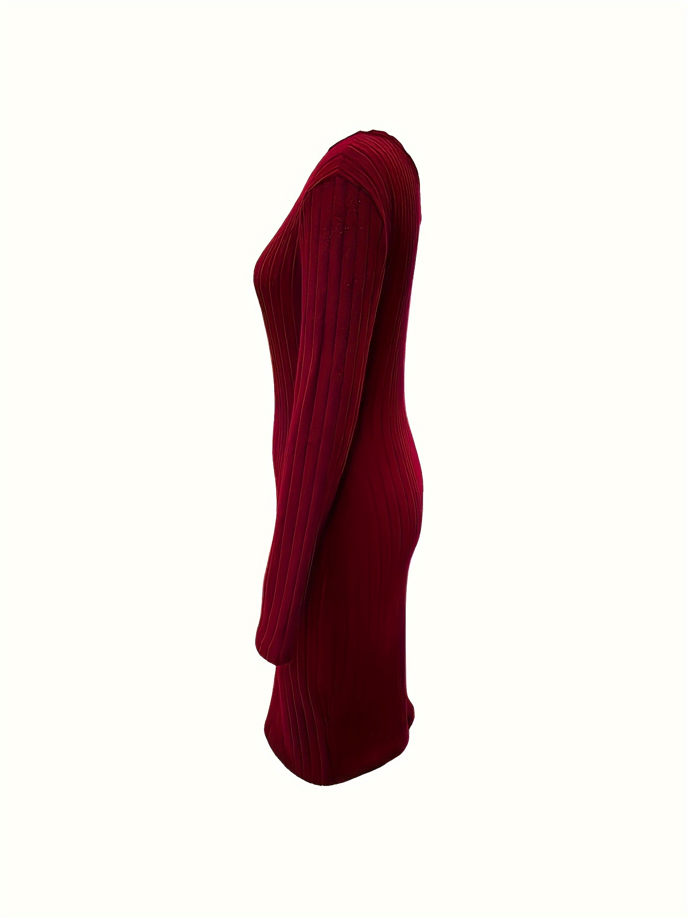 Women's Elegant Off-Shoulder Bodycon Dress - High Elasticity Stretch Fabric, Mid-Length Long Sleeve, Deep Red Solid Color, Machine Washable for Fall/Winter
