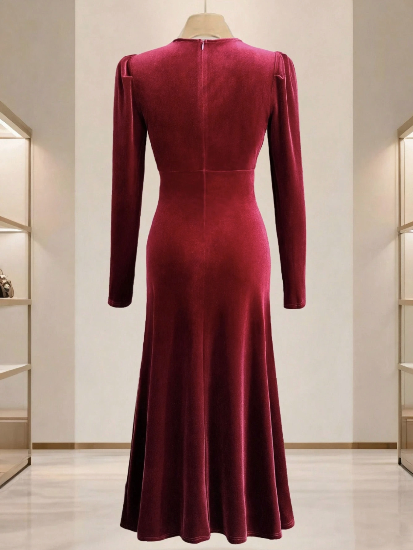 Burgundy/Deeper Red (Maroon) Button-Front Slit & Pleated Waist Dress - Elegant Winter Wedding Guest Gown, Party Evening Dress for Fall/Winter, Hand Washable Solid Color Formal Attire