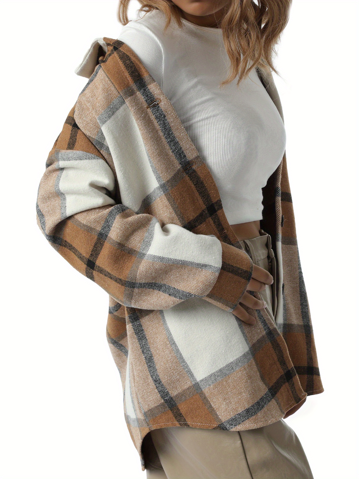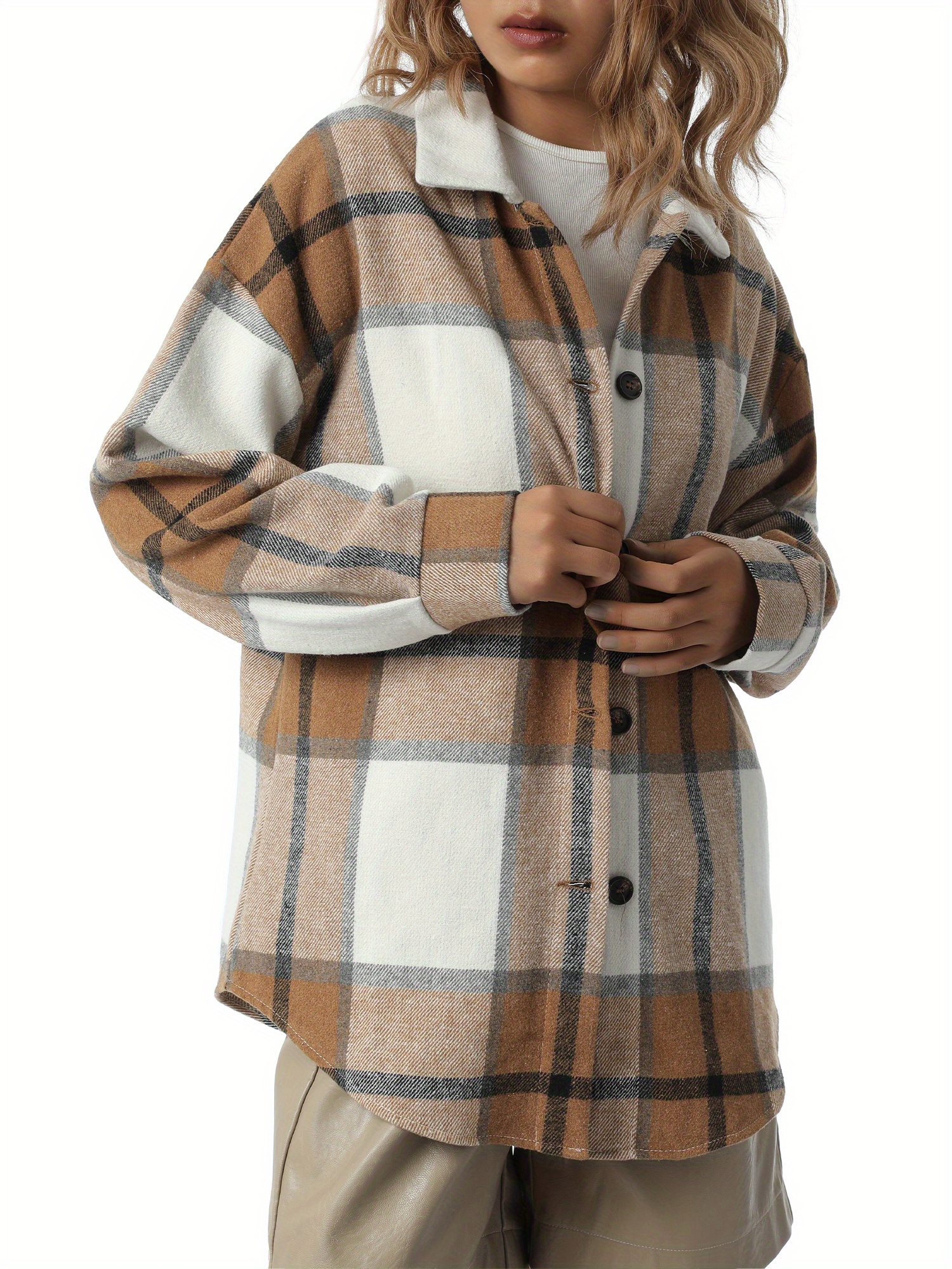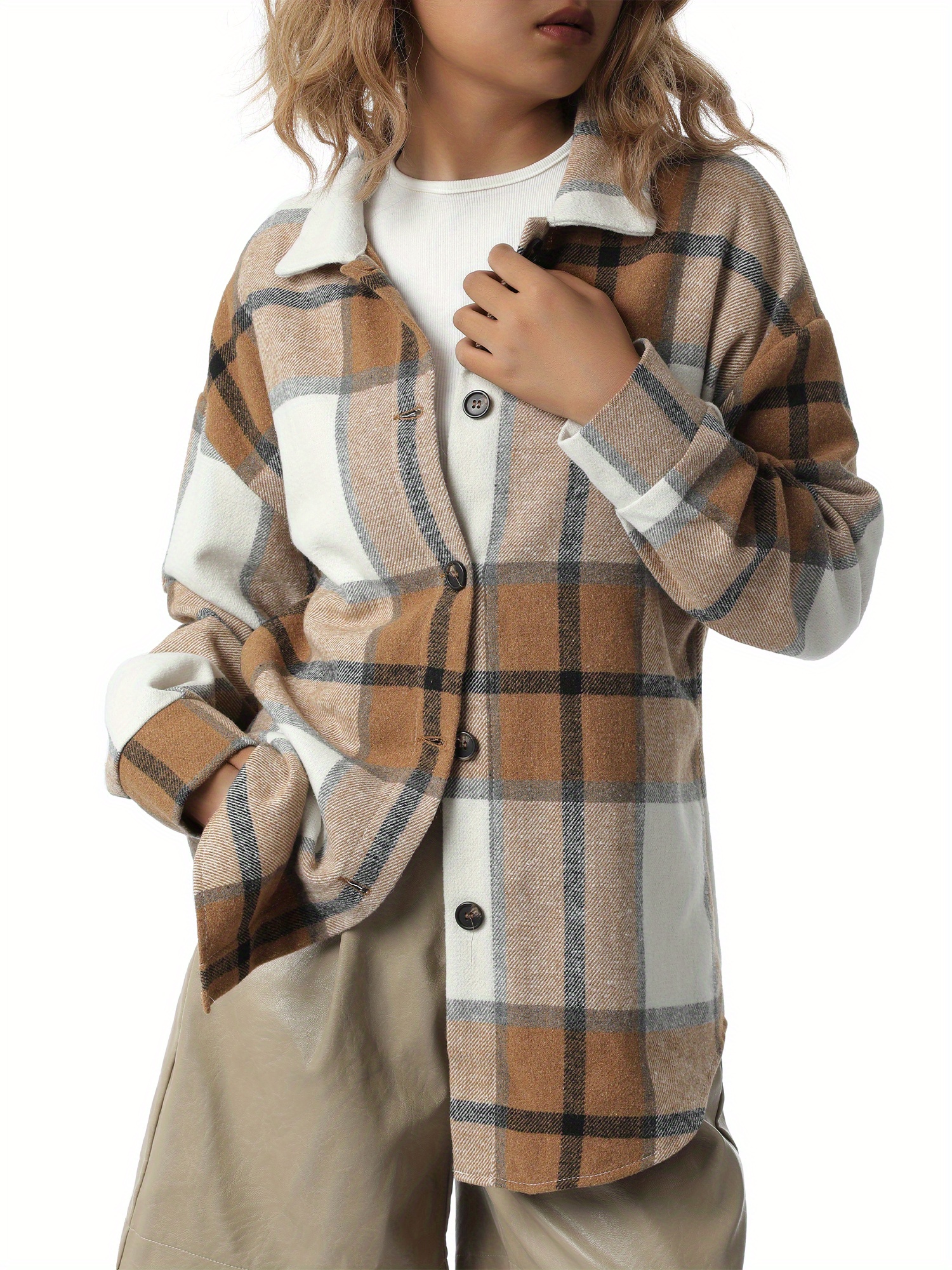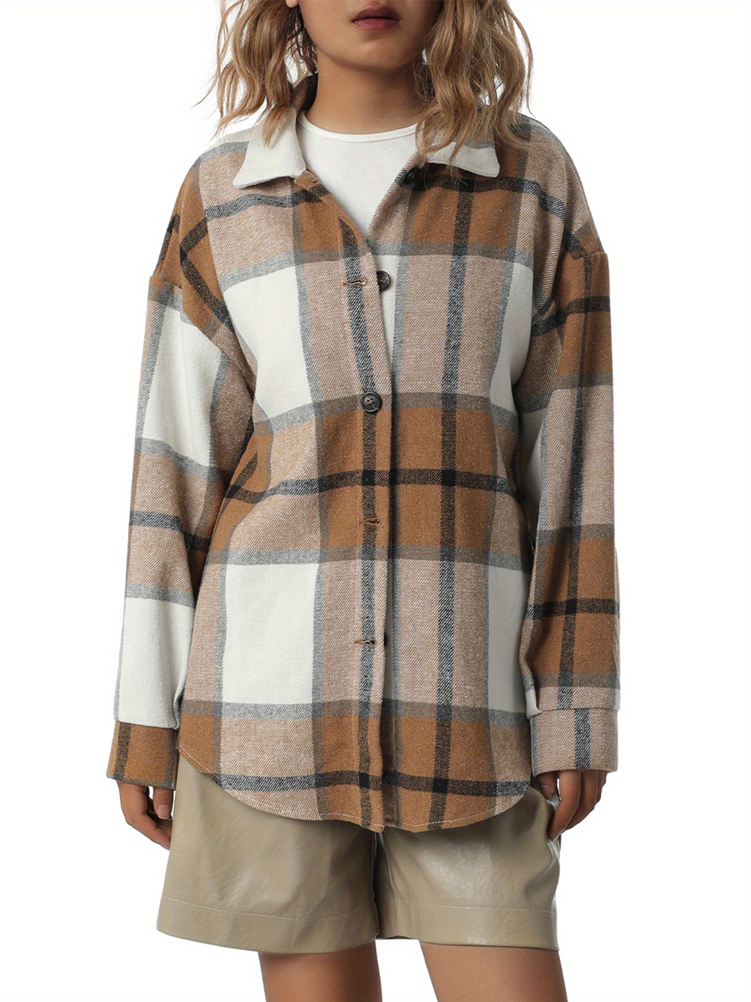 Women'S Button Plaid Print Shirt Jacket Casual Long Sleeve Lapel Loose Coat Going Out Jacket Outwear, Casual Wear, Summer Coat