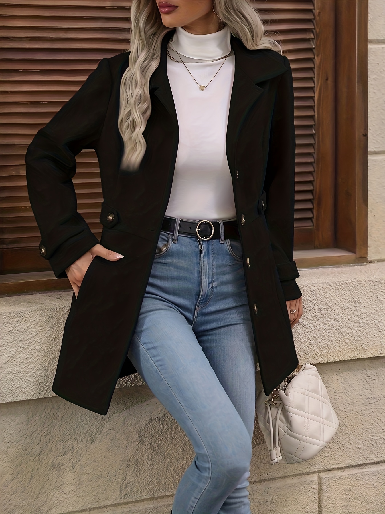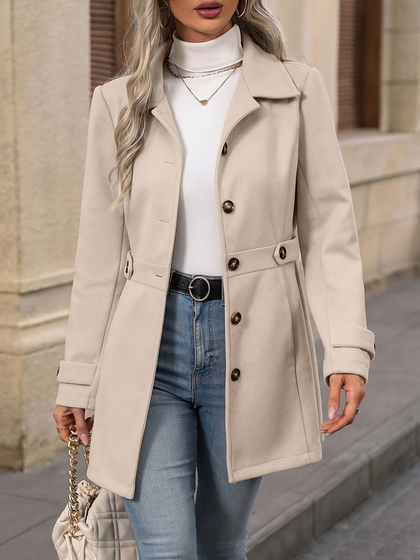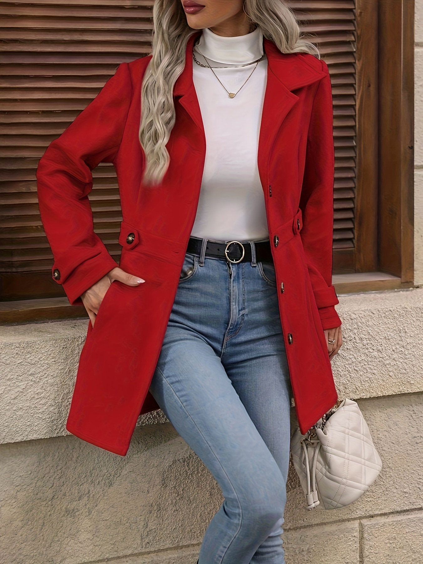 Women'S Elegant Slim-Fit Mid-Length Coat - Lapel Collar Button Front Closure, Vibrant Red Winter Warm Coat with Belt, Structured Tailored Design for Casual & Formal Outfits, Versatile Outerwear for Fall and Winter Seasons, Elegant Coat for Women