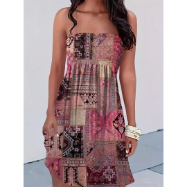 Strapless Boho-Chic Bandeau Dress - Smock Dress with Smock Button Closure, Smock Panel & Smock Pocket - All-Season Casual to Dressy Wear, Random Size Shipment (Machine Washable) - Boho Wedding Guest Outfit, Vacation Dress