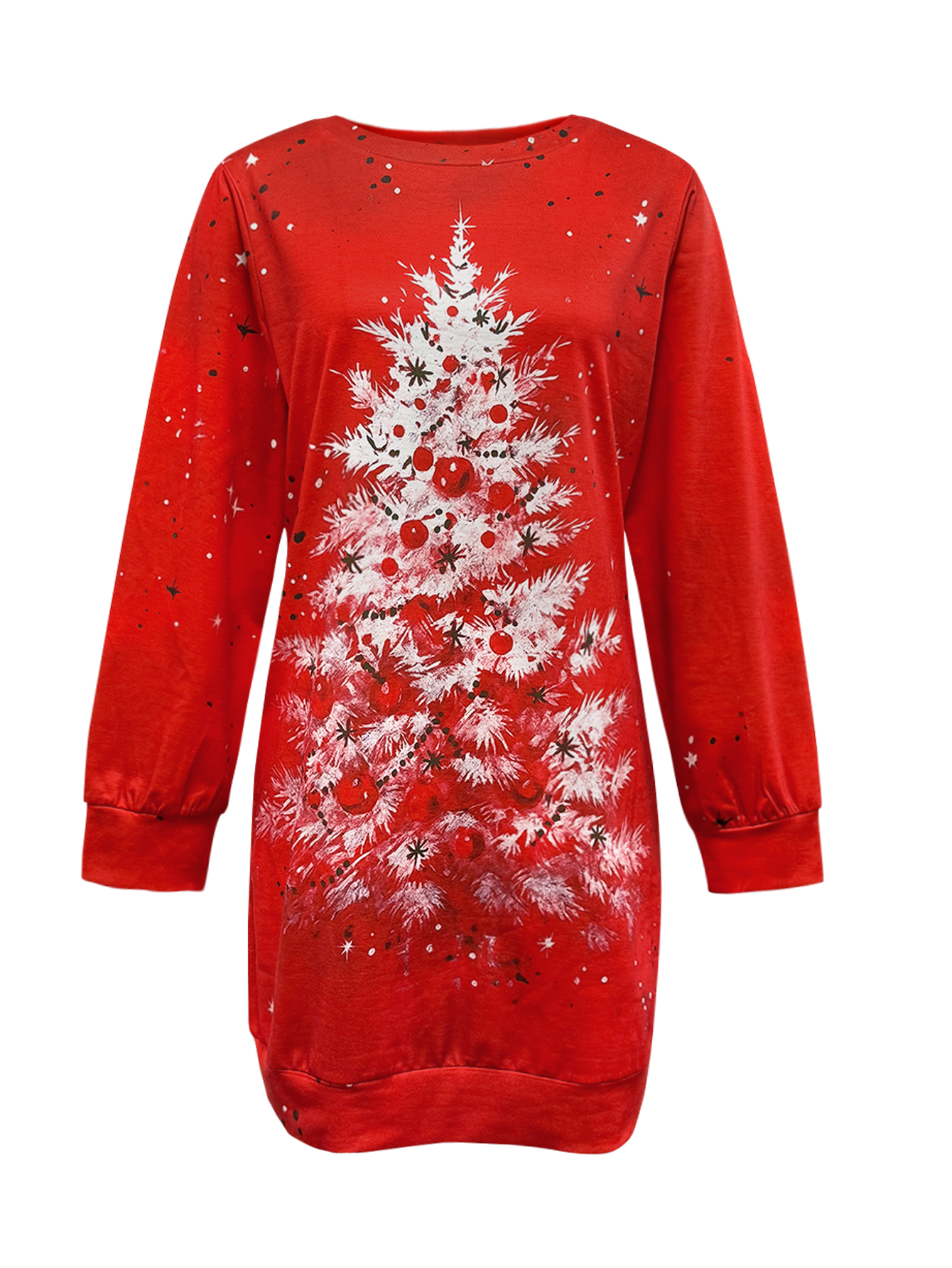 Women'S Red Sweatshirt Dress with Christmas Tree Print | Round Neck, Long Sleeve, Fashionable Commute, Autumn/Winter Holiday Party Streetwear, Eye-Catching Lightweight Crew Neck Sweatshirt Dress