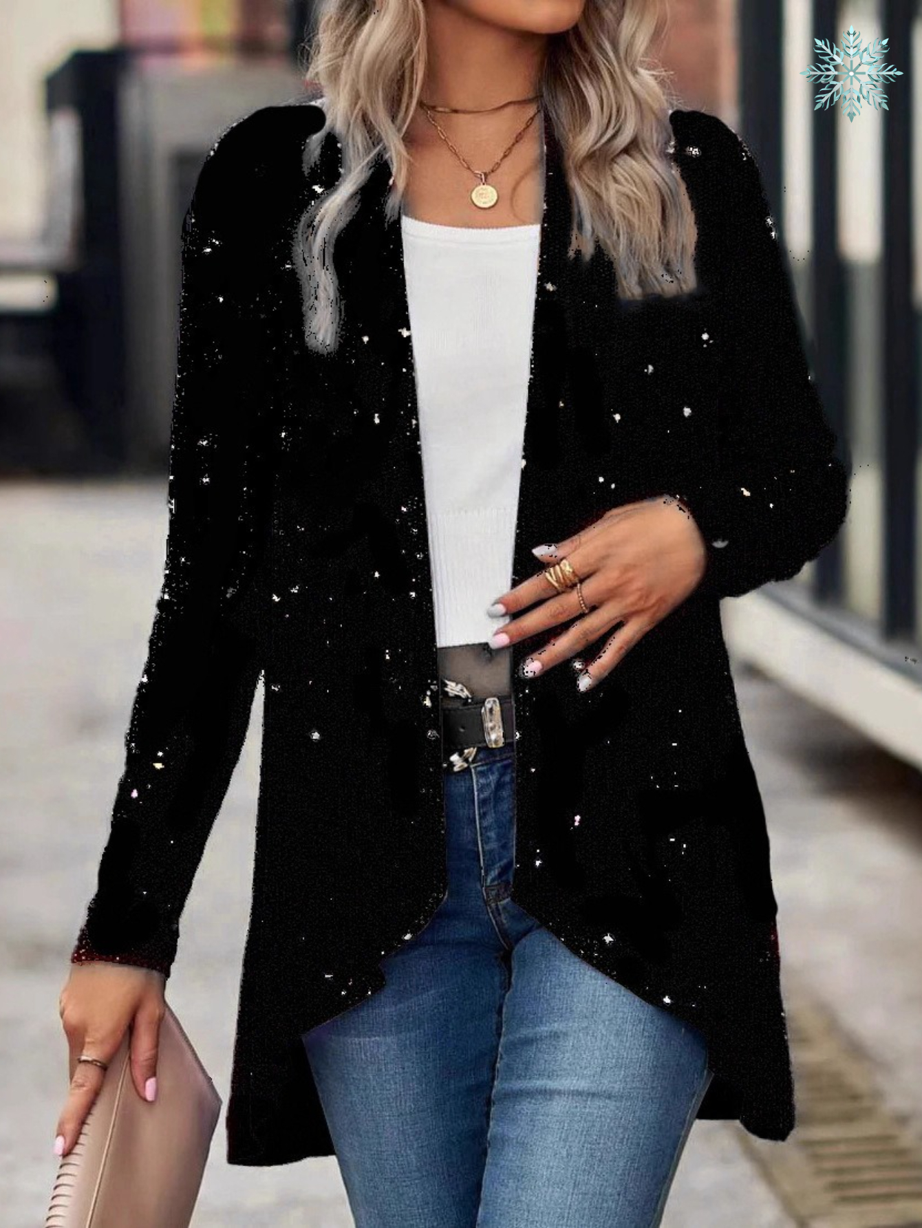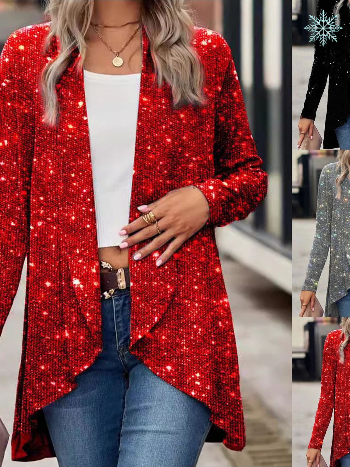 Women's Sparkling Sequin Blazer Jacket - Shiny Single-Breasted Evening Party Blazer, Loose Fit Long Sleeve Fall/Spring Outerwear for Weddings, Proms, Award Ceremonies (Non- Suit)